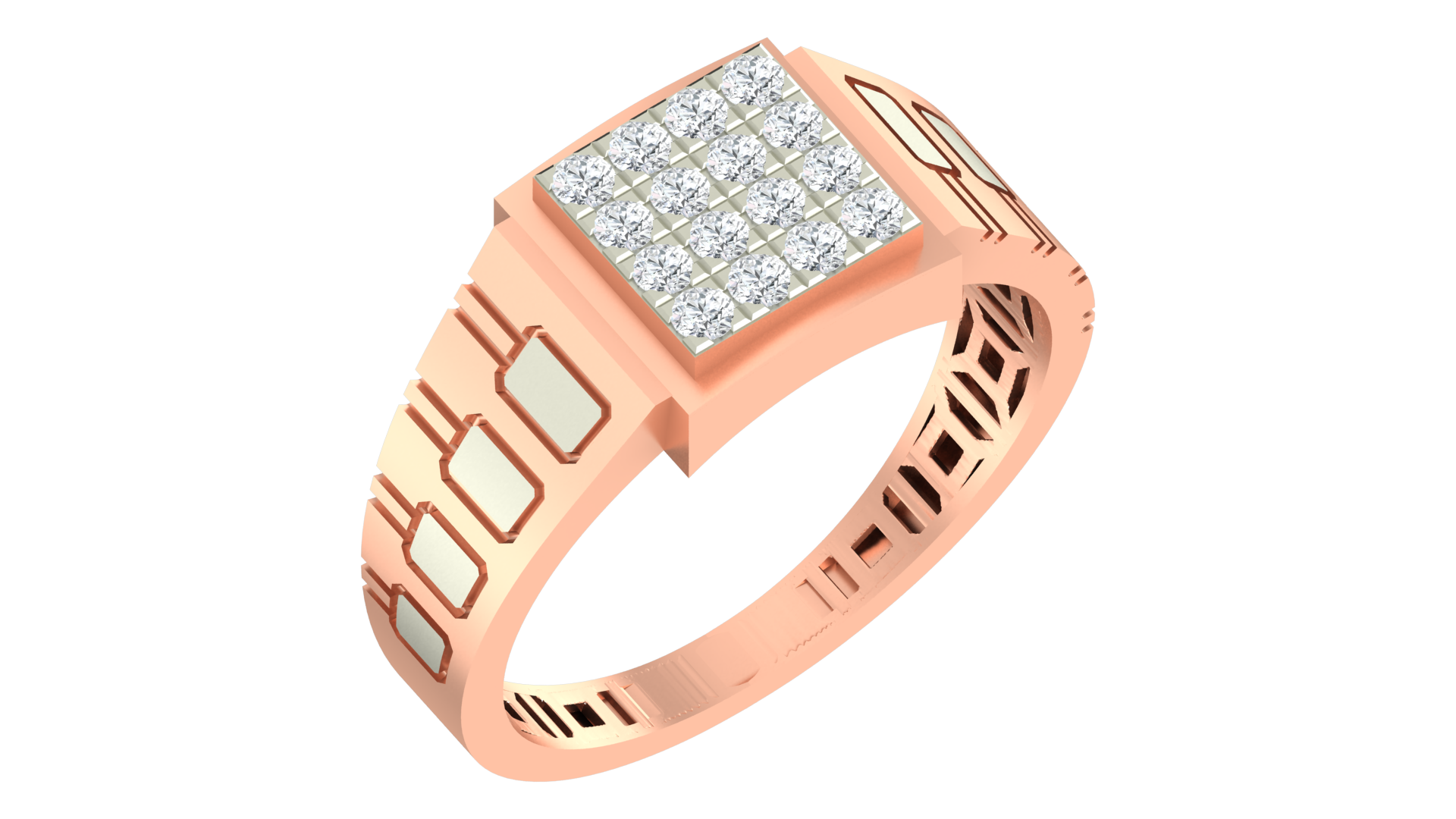 This distinguished 18K gold men's square ring features meticulously set diamonds that command attention in social settings. The precision-cut diamonds create exceptional light performance, ensuring you stand out with sophisticated brilliance at any party or event.